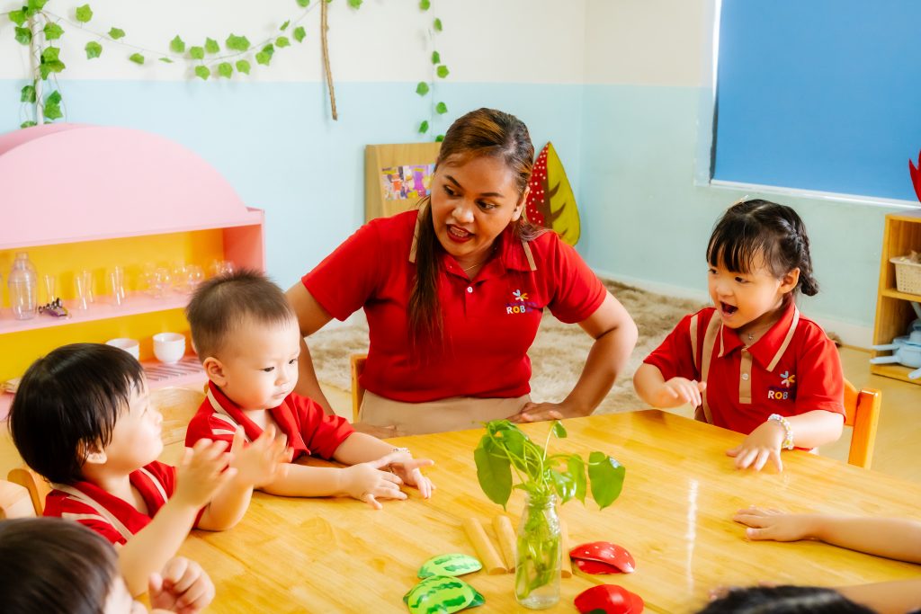Tại ROB Kids, tiếng Anh len lỏi vào từng giờ chơi, bữa ăn, hay những hoạt động Happy Day đầy tiếng cười. Khi ngôn ngữ được nuôi dưỡng bằng niềm vui, con sẽ không thấy đó là áp lực. Sự tự tin ấy sẽ theo con vào cấp 1, cấp 2 và suốt hành trình trưởng thành, giúp con luôn chủ động trong mọi tình huống.