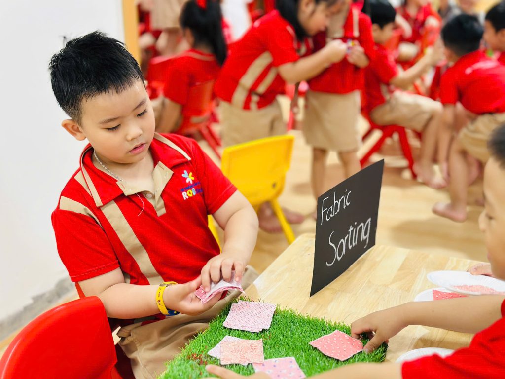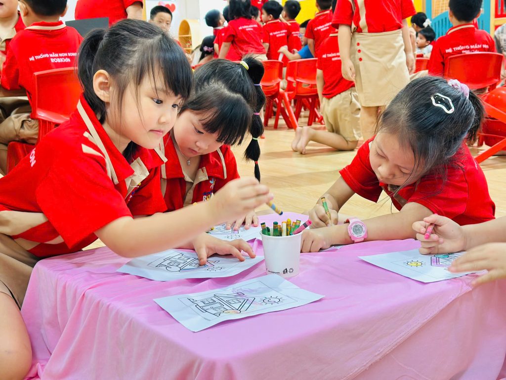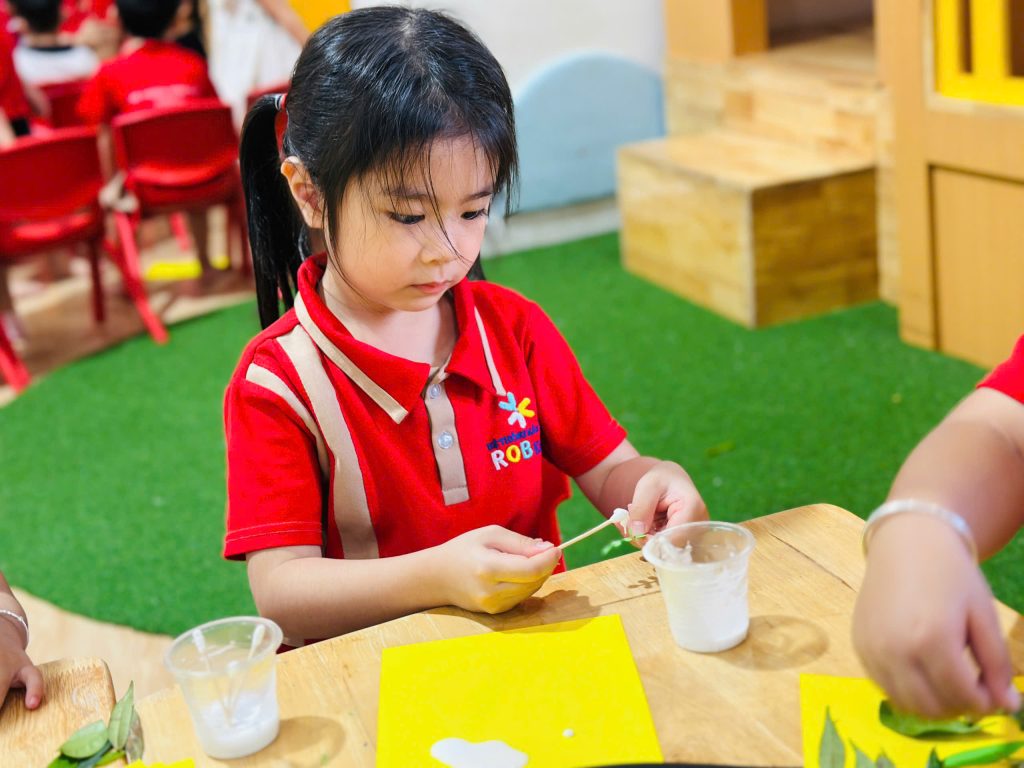 • Biểu hiện sinh động: Là lúc con tập trung cao độ để xâu một hạt cườm, cầm bút chì màu vẽ những nét nghệch ngoạc, hay sự khéo léo khi điều khiển những robot nhỏ trong giờ học STEM.